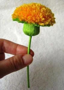 Проволоку обматываем зелеными нитками, закрепляем на ней цветок.