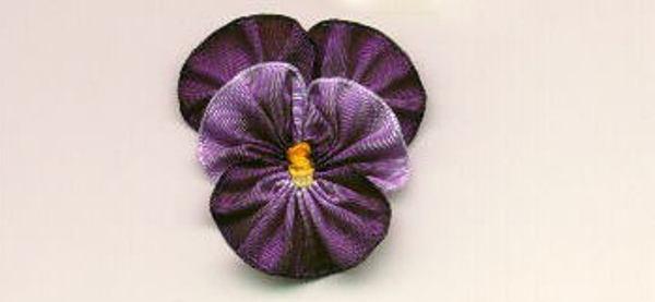Анютины глазки из атласной ленты