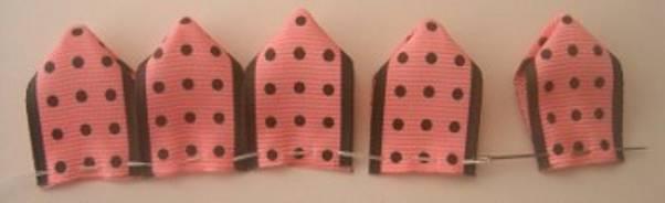4. Из ленты нужно выкроить лепестки. Можно сложить ленту и вырезать сразу несколько лепестков. Для удобства можете скрепить ленту канцелярскими зажимами.
