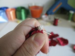 - сделайте тычинки и вставьте их в центральное отверстие - закрепите их ниткой.
