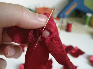 5. Соберите на нитку лепестки (вдоль среза).