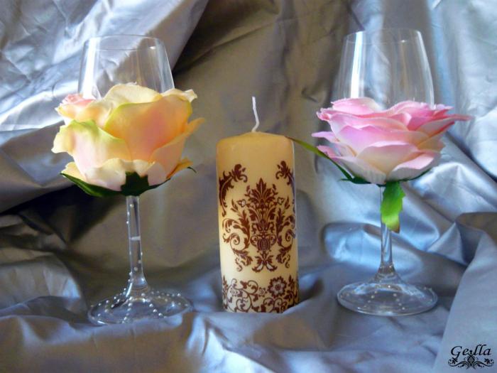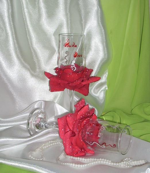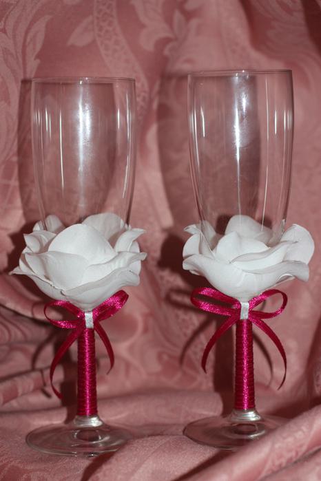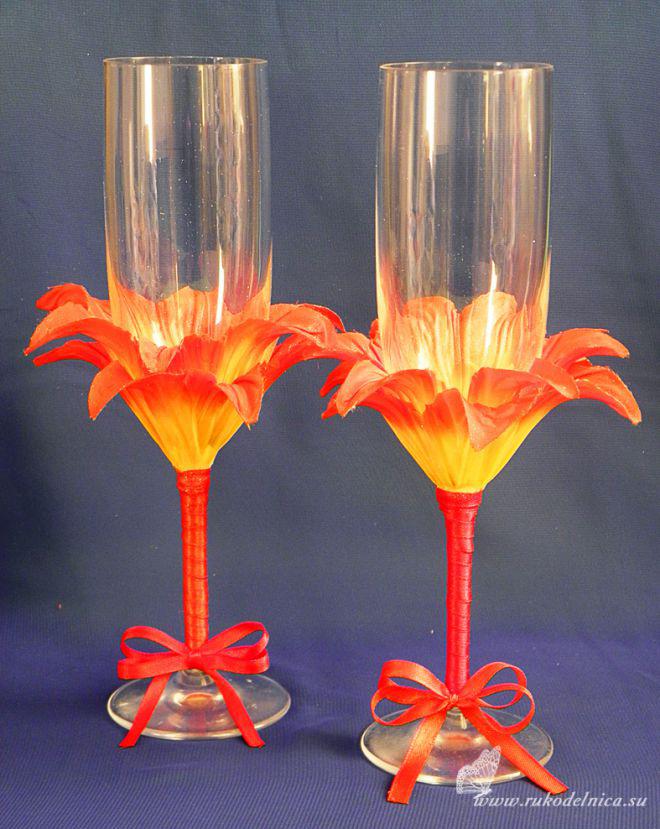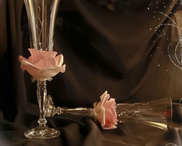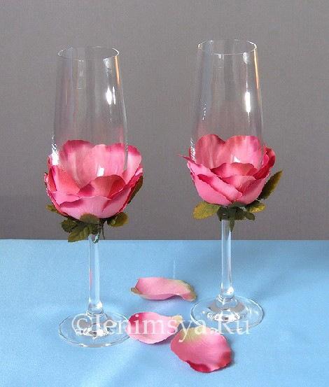 Декор свадебного бокала лепестками. Мастер-класс