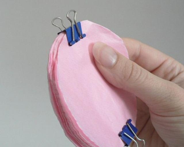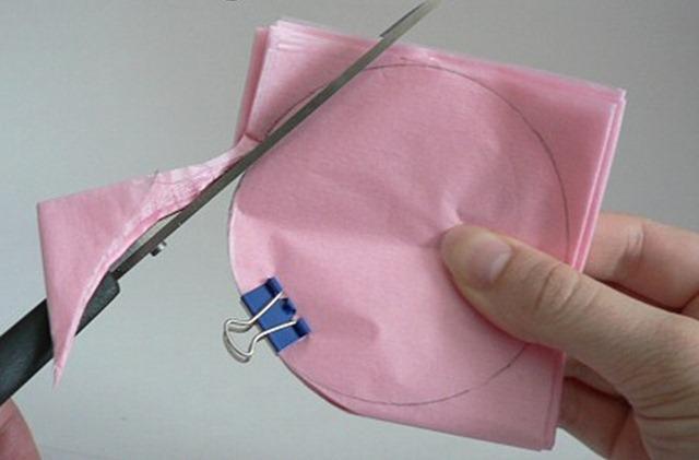 Бумагу складываем в несколько слоев, вырезаем круги.