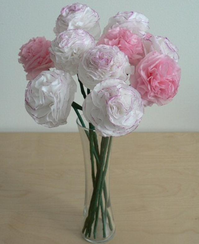 Полчаса - и вы с букетом "гвоздик". Сделать их очень просто и совсем не затратно! Изготовлением таких цветов можно занять и детишек. Пусть рукодельничают :))