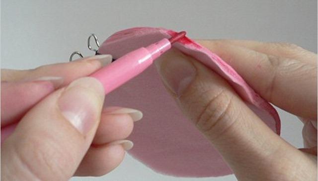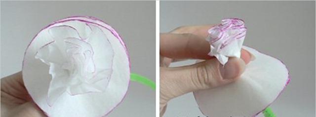 Из белой бумаги также вырежьте круги, но на белой бумаге прорисуйте края малиновым фломастером.
