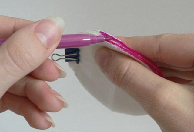 Теперь по краю обрезанной бумаги прорисуйте красным фломастером.