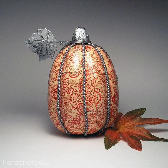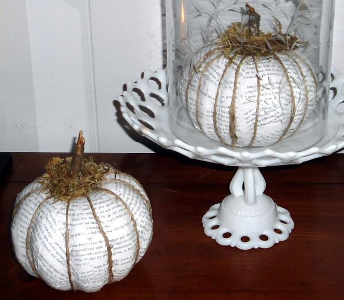 Все работы выполнены с применением декупажа с помощью салфеток, распечаток на принтере, газет, нотных страниц или ткани. И, конечно,вам понадобится матовый клей для декупажа MOD Podge или ПВА Если у вас не окажется тыквы, вы можете запросто сделать ее из папье-маше.