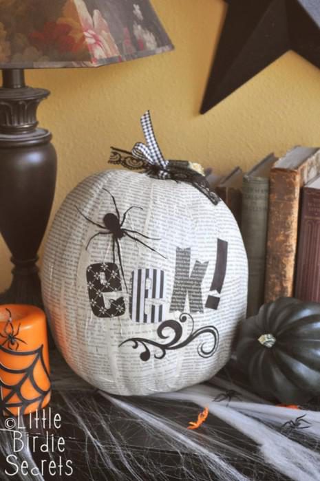 Очень креативно смотрятся тыквы с декупажем из газет или нотных страниц.