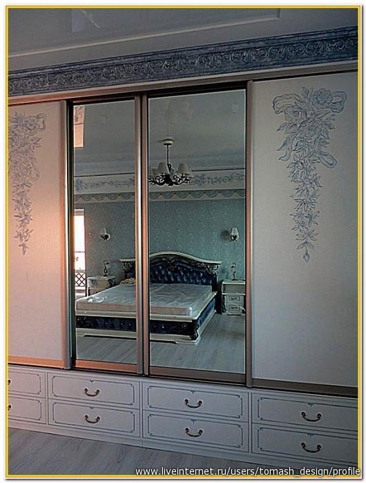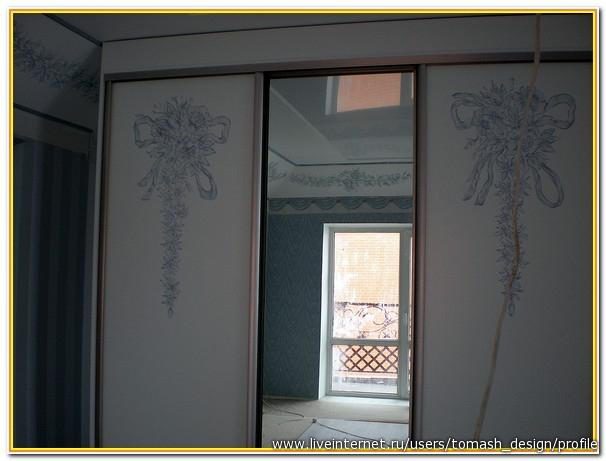 2.На дверцы шкафа-купе нанесли рисунок акриловой краской( не умеете рисовать — можно с помощью трафарета)