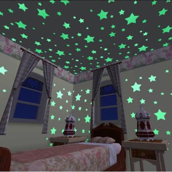 Все волшебное манит детей. Создайте звездное небо на потолке. Для этого нужен трафарет со звездами разной величины, созвездиями, луной, планетами, кометами. Раскрасьте их фосфорными красками. Днем рисунок будет «собирать» свет, ночью рассеивать, создавая впечатление свечения.