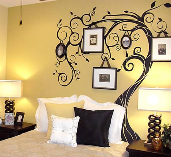 В спальне уместны неяркие однотонные рисунки животных, ангелов, цветов, деревьев, фей. Поместите рисунок дерева у изголовья кровати, желательно такого же цвета. Будет создаваться впечатление, что кровать находится в ветвях. Ангелы «унесут» вас в облака.