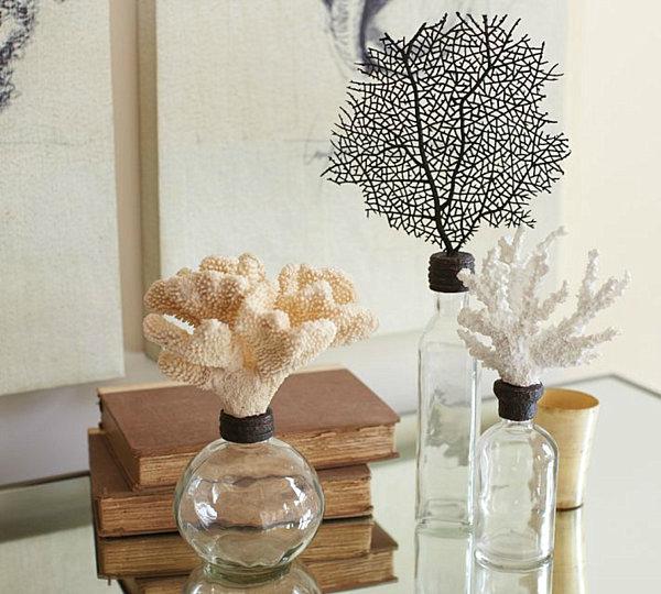 Хрупкие веточки кораллов увлекут вас в далекие странствия. Не расстраивайтесь, если не были на экзотических морях: натуральные кораллы запрещено ломать и тем более вывозить за пределы страны. Для интерьера подойдут имитации, которые легко сделать своими руками. Мы уже рассказывали, как их сделать.