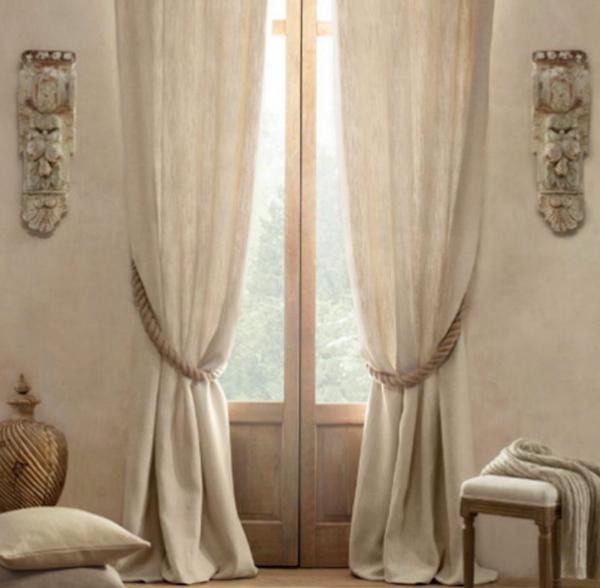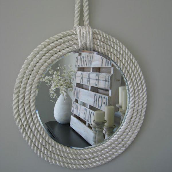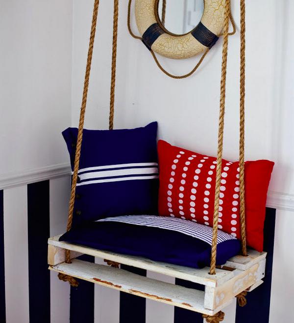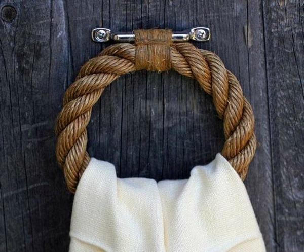 Самая характерная черта морского стиля - канат в интерьере. Вяжите морские узлы и украшайте ими вазы, оплетайте жгутом мебель или используйте веревку в качестве подхвата для занавесок.