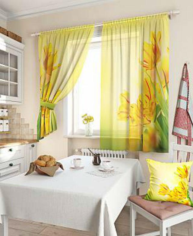 Легкие, воздушные, романтические занавески идеально завершат обстановку кухни.
