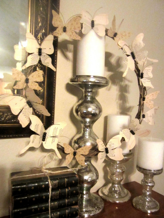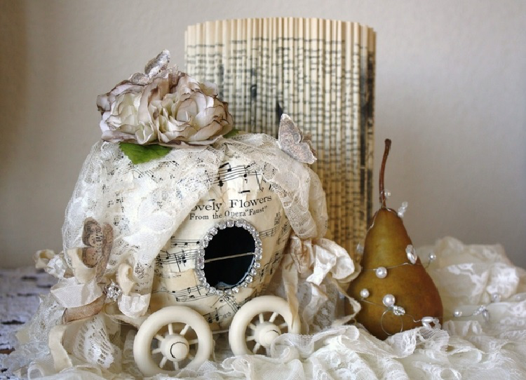 К примеру, можно сделать на рождество восхитительный венок или украсить абажур старой лампы. А какие забавные шкатулочки для мелочей выходят из бумажных коробок обклеенных страницами из книг и украшенными кружевами.