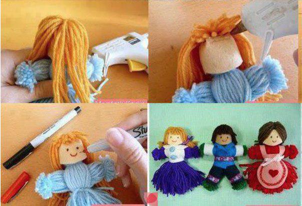 А вот таких куколок можно легко сделать из ниток, и даже привлечь к этому занятию детей!