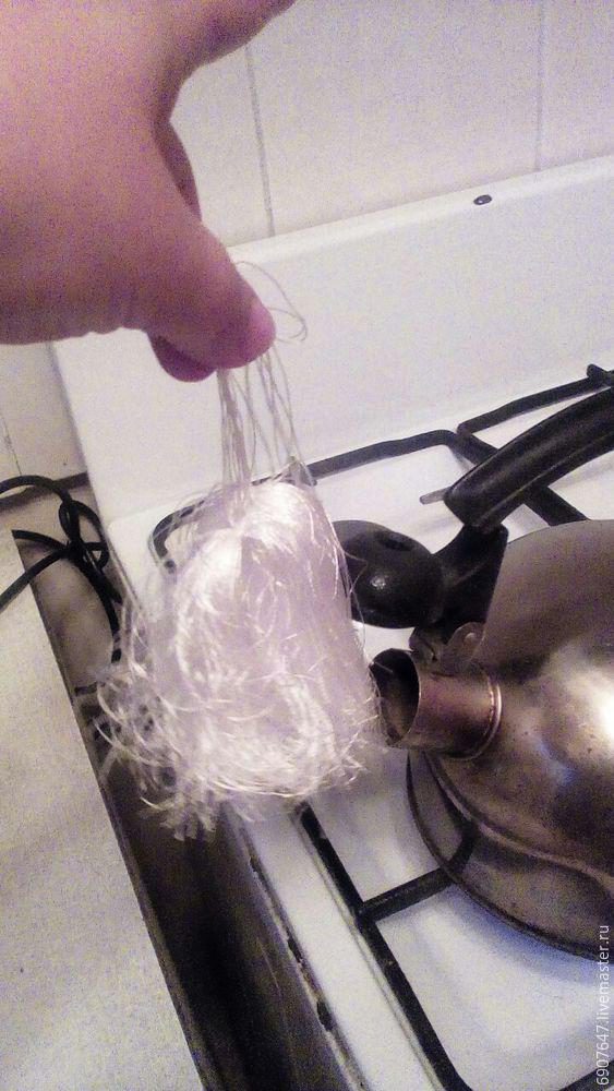 Кипятим чайник и держим над паром несколько минут получившиеся кисточки, время от времени вытягивая их руками.