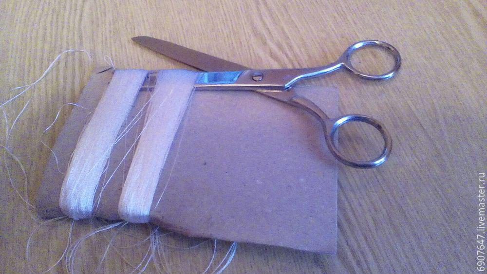 Начинаем равномерно, но не очень плотно наматывать нитки на картон.
