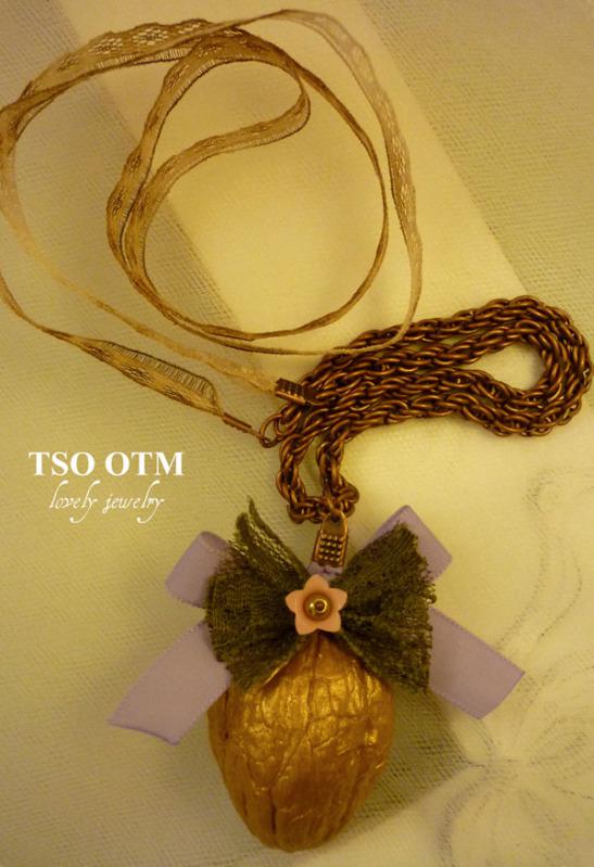 Еще один вариант: покрасить орешек под золото, а вместо шнурка использовать ленточку.