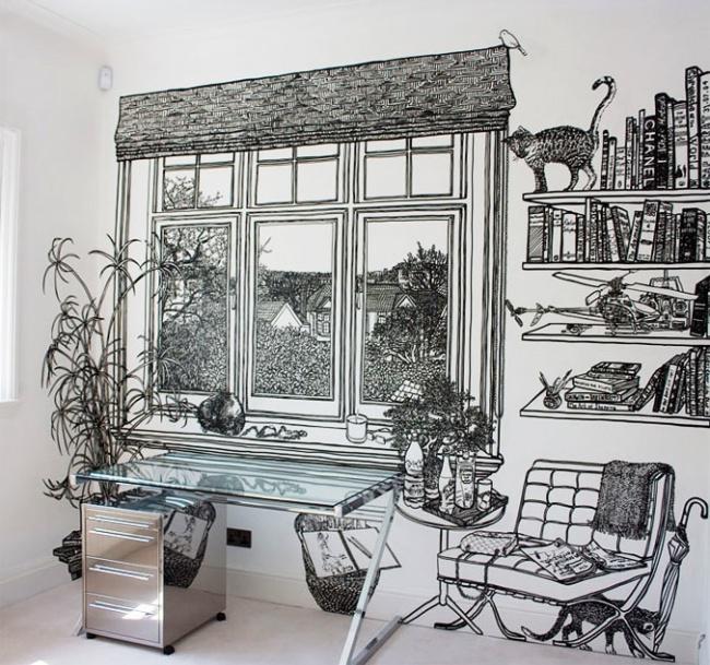А для тех, кто умеет рисовать - рисунки маркером вместо обоев и недостающих предметов мебели. Гениально!