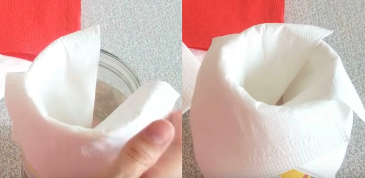 Выложите салфетки вокруг горлышка банки в несколько слоев.