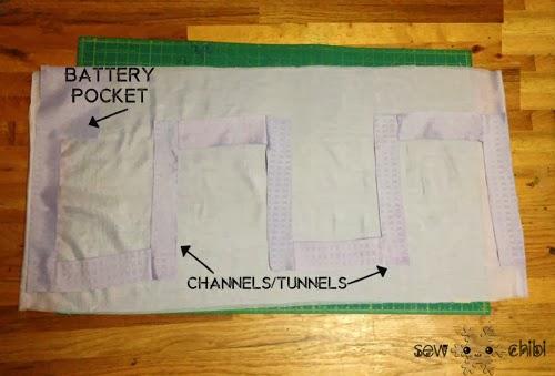 Светодиодная гирлянда вставляется в специально сшитые отведенные кармашки, пришитые к подкладочной, внутренней юбке из хлопчатобумажной ткани.