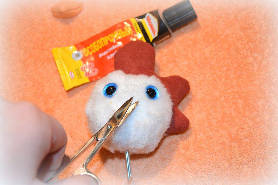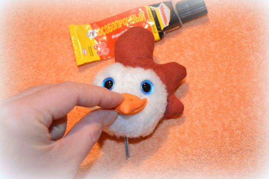 Обратите внимание, что клюв должен принять форму головы, то есть быть округлым у основания. Иначе после приклеивания будет топорщиться по бокам.