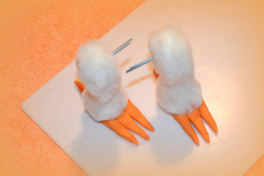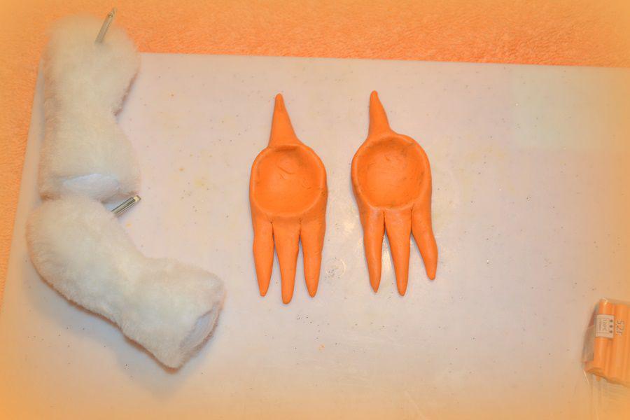 Далее работаем с полимерной глиной — лепим клюв и лапки.