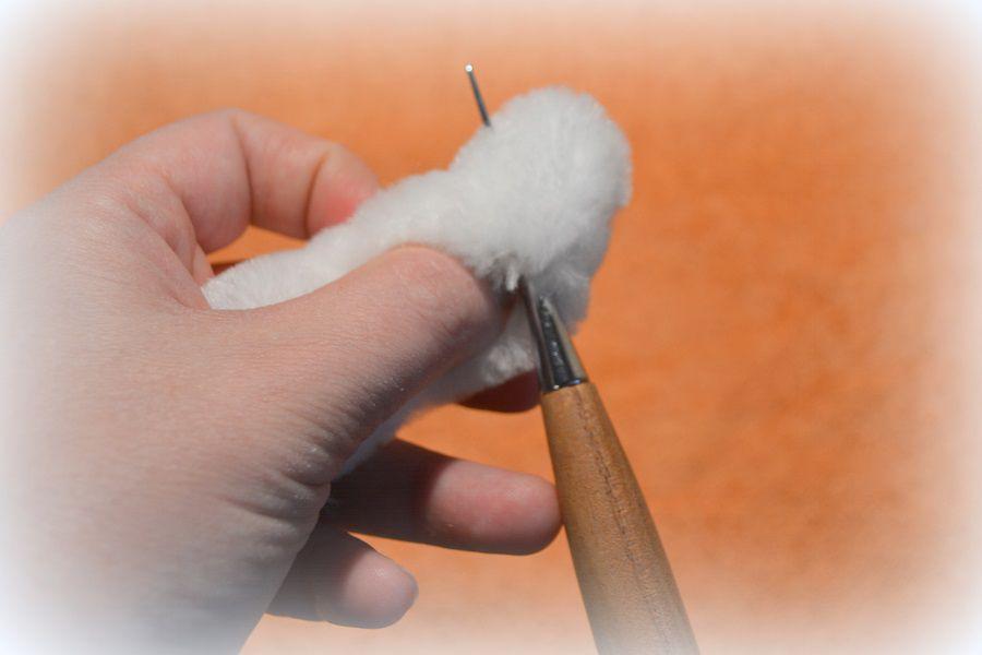 Далее работа не сложная, но требующая аккуратности. Расскажу, как я прикрепляю хвост. Таким же способом можно пользоваться для крепления коготков у мишек-тедди:)
