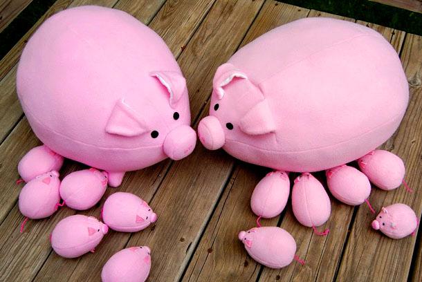 Круглая толстая свинка и поросята из ткани станут отличным подарком для детей