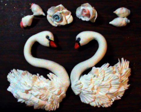 Лебедей лепила из массы для лепки. Удивительная вещь ! Когда лепишь ощущение, что жвачка, а высыхает, становится как ластик(легкий ,мягкий, режется ножницами)
