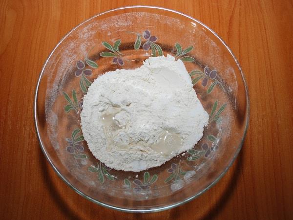 Постепенно добавляем воду, постоянно помешивая тесто.