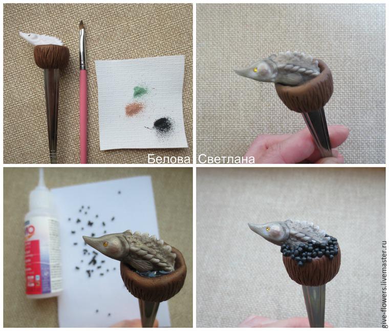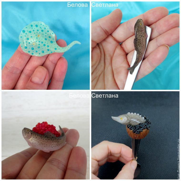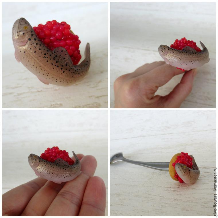 Для примера покажу ложечку, которую я сделала с такой же рыбкой, но ещё и с икоркой.