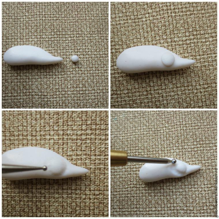 Снова та же глина. Небольшому кусочку придаём форму как на фото — острый, изогнутый носик, ребро.
