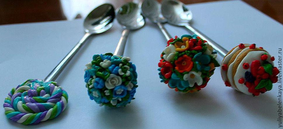 В сети есть довольно много идей украшения ложек и вилок. Я нашла чудесный мастер-класс, где Автор, Светлана Белова, показывает и рассказывает, как декорировать ложки и вилки полимерной глиной, превращая их в очаровательные сувениры, которые будут рады получить в подарок все ваши друзья и родные.