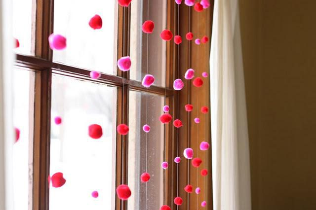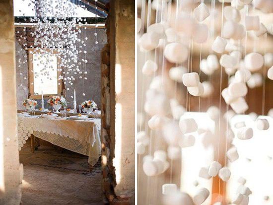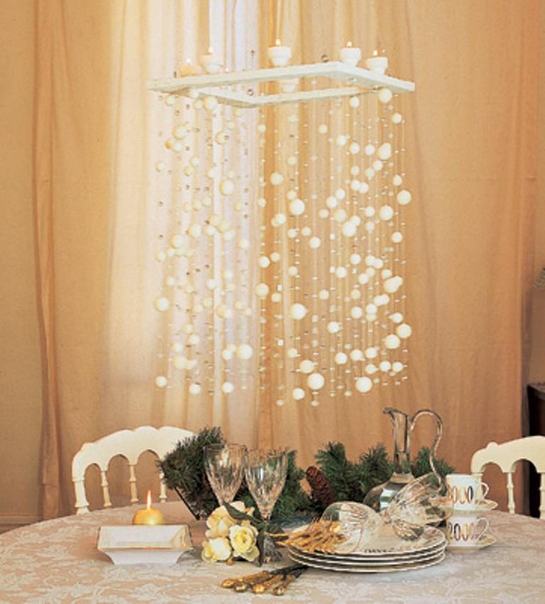Ватные шарики на ниточках для интерьера. Очень напоминает падающий снег)