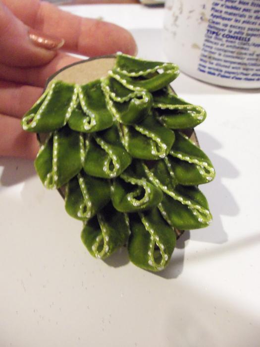 Для создания такой симпатичной шишки Вам понадобятся лишь тесьма, картон и клей!