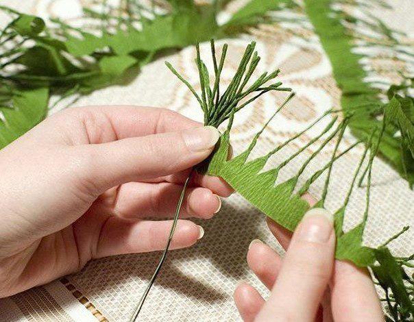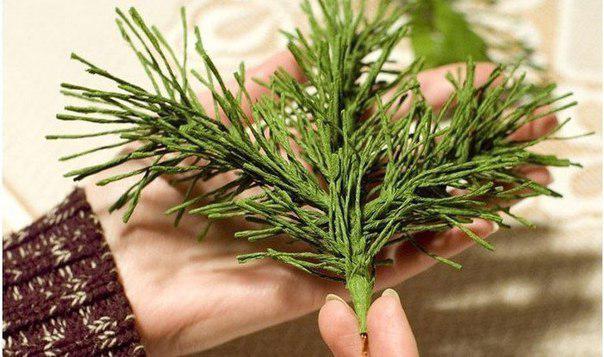 Еловая ветка с шишками из гофрированной бумаги (видео)