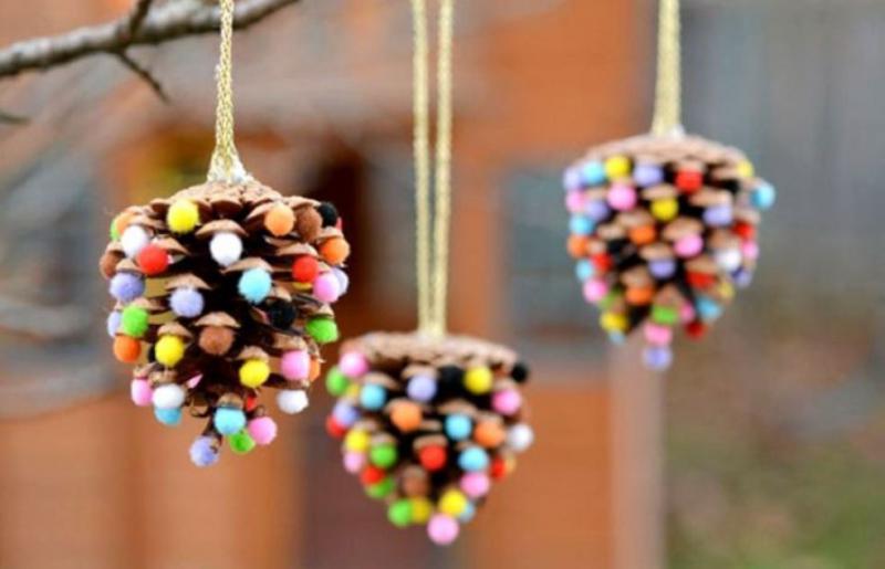 Если же Новый год ассоциируется у вас, в первую очередь, с уютом, теплом домашнего очага и приятным времяпрепровождением в кругу семьи, то лучше всего вам подойдут елочные игрушки, изготовленные своими руками. В этой статье мы расскажем, как сделать елочные игрушки из шишек и миниатюрных помпонов.