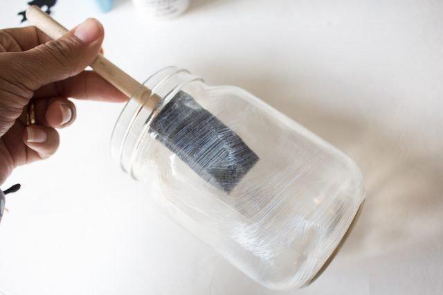 Шаг 1. Используя поролон, нанесите тонкий слой белого клея внутри чистой (желательно обезжиренной) банки.