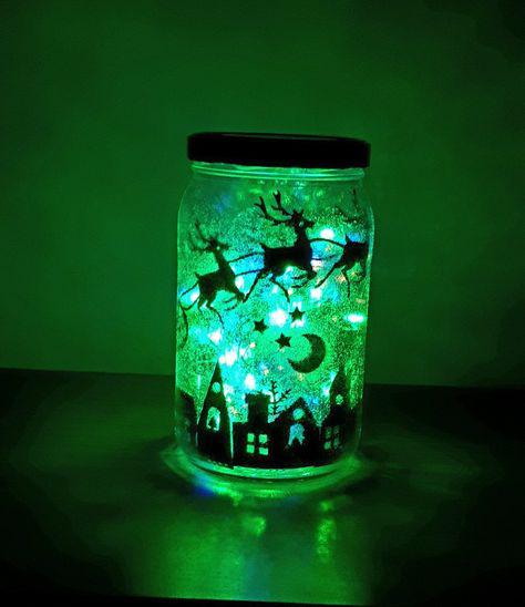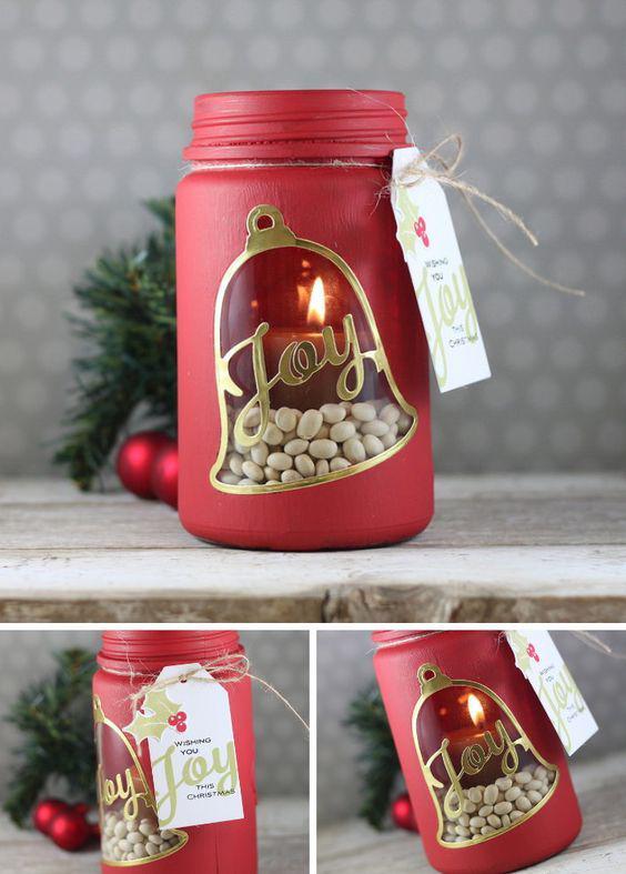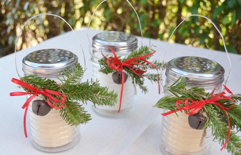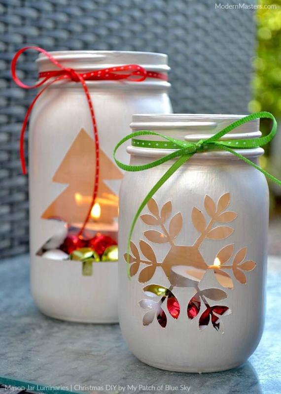 Еще идеи оформления новогоднего фонарика-подсвечника из банки: