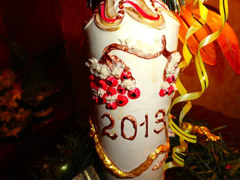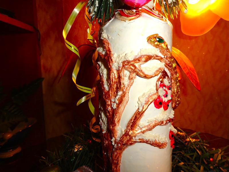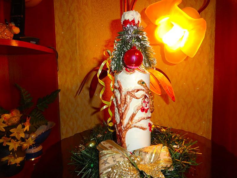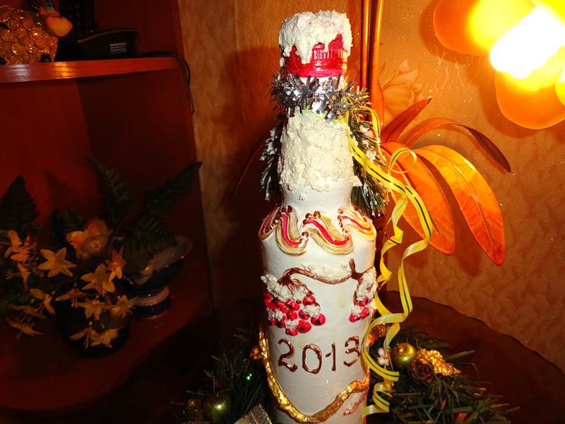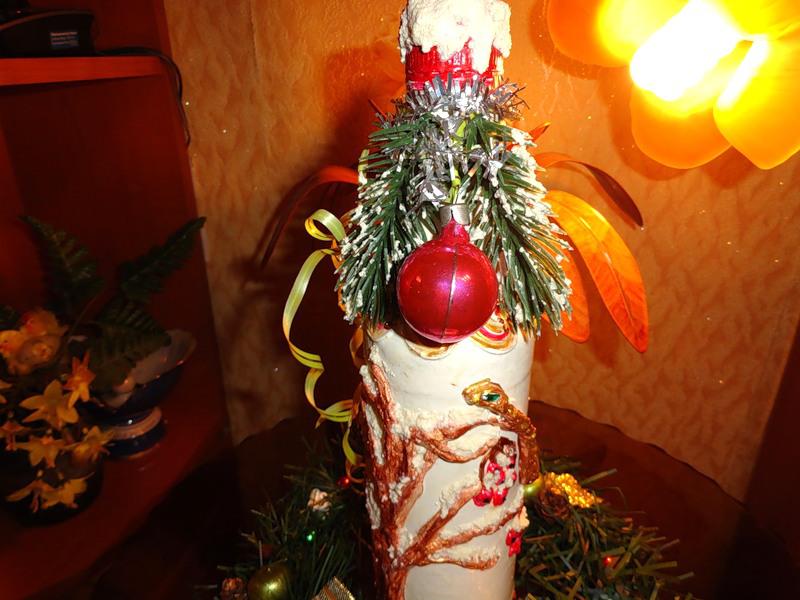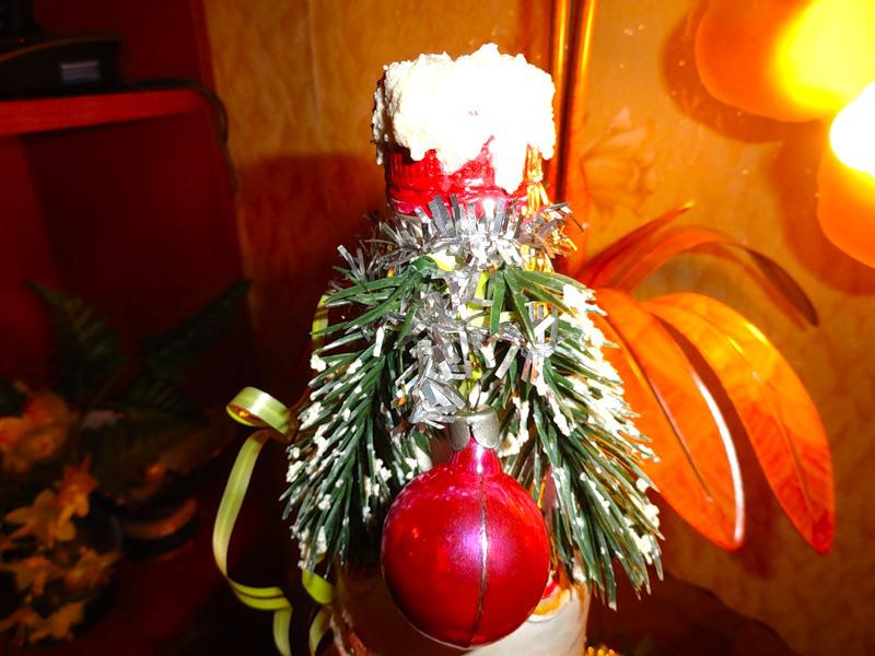 Потом украсила бутылочку "снегом". Мне кажется, стало лучше!