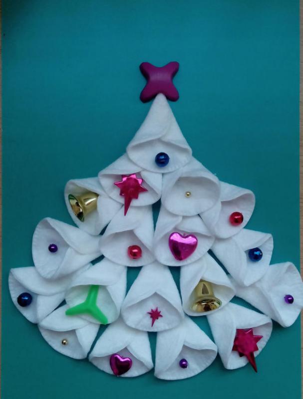 Также посмотрите подробное и наглядное видео о том, как сделать ёлочку из ватных дисков:
