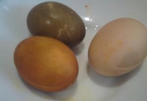 Для окраски я стараюсь брать белые яйца. Но в этом году белых не было и на коричневых яйцах узор получился даже насыщеннее.