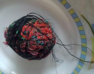 В следующий раз буду использовать только красные нитки. Зеленые оказались слишком тонкие, голубые слишком светлые. На яичке отпечаталось переплетение линий. Определенно буду еще использовать.