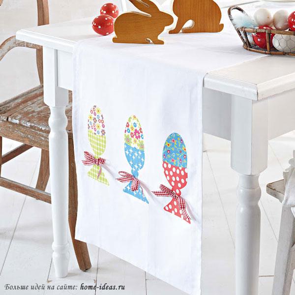 Рукодельницам, я хочу предложить простую идею украшения скатерти к Пасхе. Изготовление милой аппликации с крашеными яйцами не займет много времени и не требует особых навыков в шитье. Подобным образом можно украсить и кухонные полотенца.
