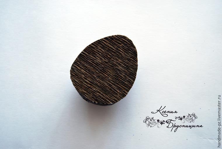 Обратную сторону заготовки обклеиваем гофробумагой. Излишки аккуратно обрезаем.