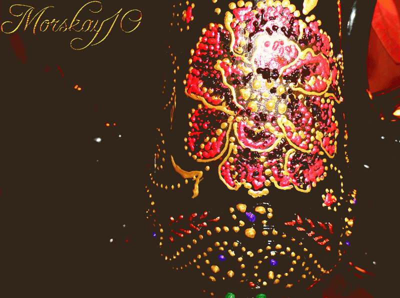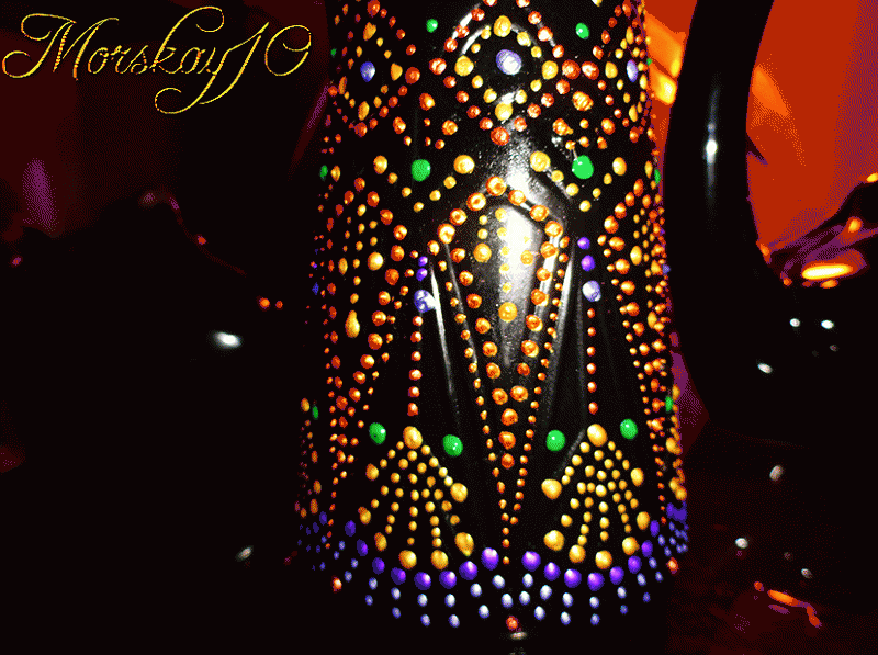 И сначала стала покрывать точками узор-рельеф, выгравированный на графине