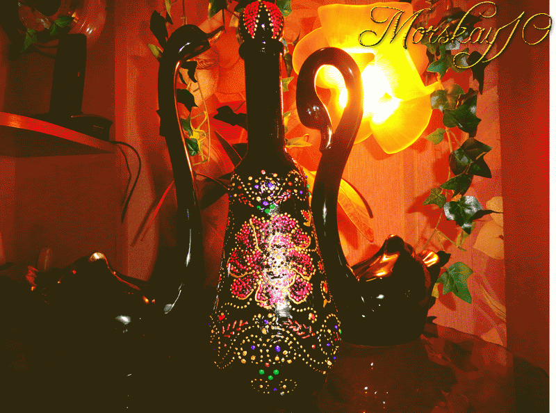Ну а потом уже разошлась и украсила центр. В общем два графинчика получились такими: