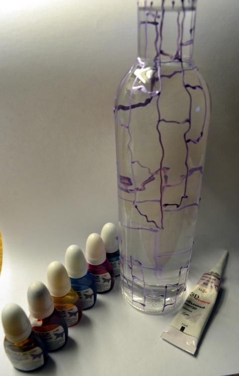 Раскрасила витражными красками (двойной слой, чтоб было ярче)